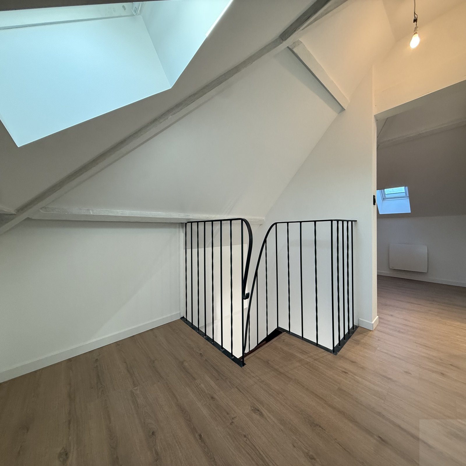 Appartement T4 duplex avec balcon, jardin privatif, garage et cave de 97,2 m² (loi Carrez) situé au dernier étage sans ascenseur comprenant :