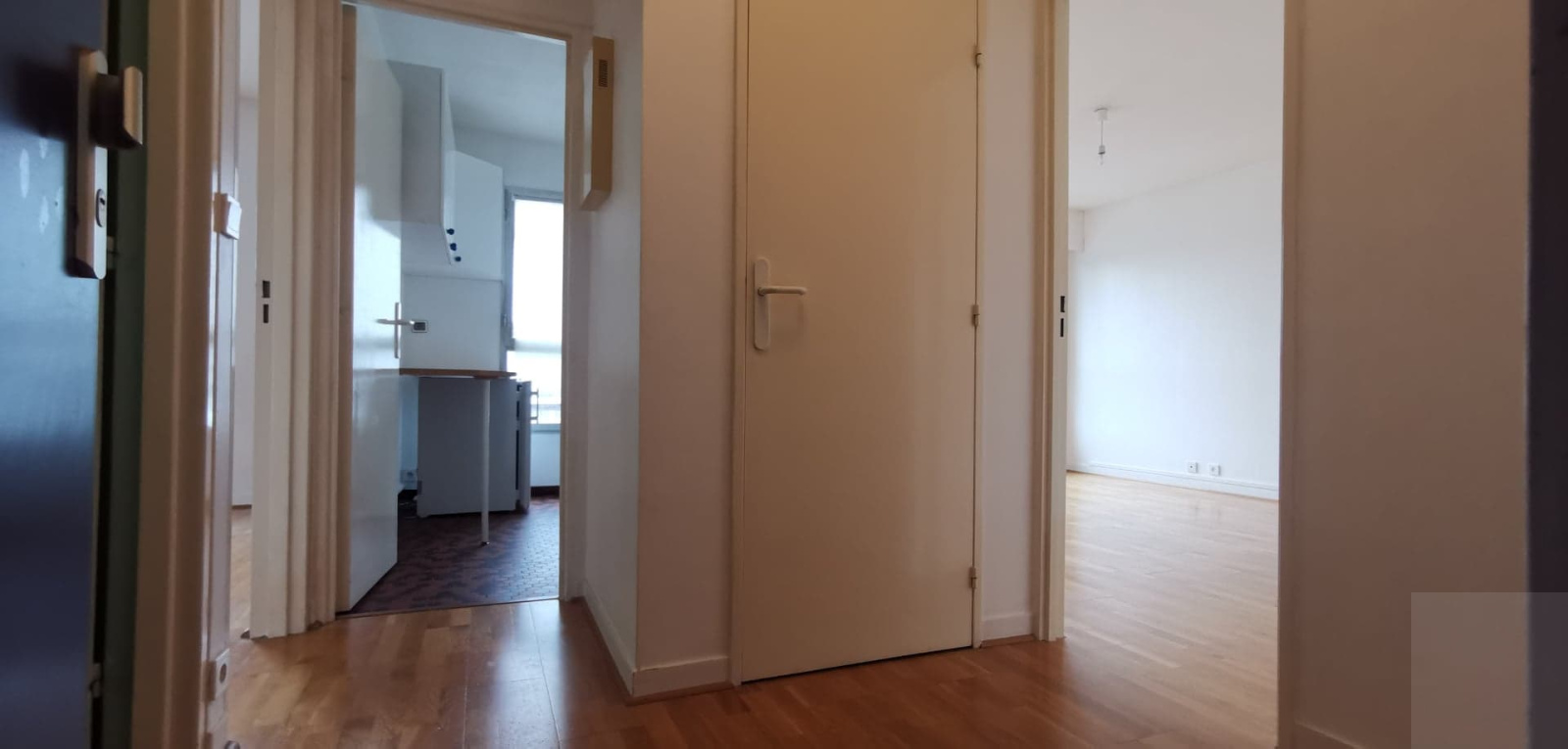 Appartement F2 de 43m² offrant une entrée, un vestiaire, un séjour, une cuisine équipée aménagée, une chambre, une salle de bain avec WC.