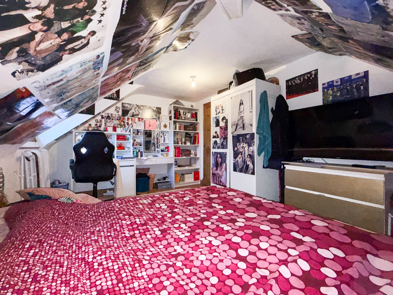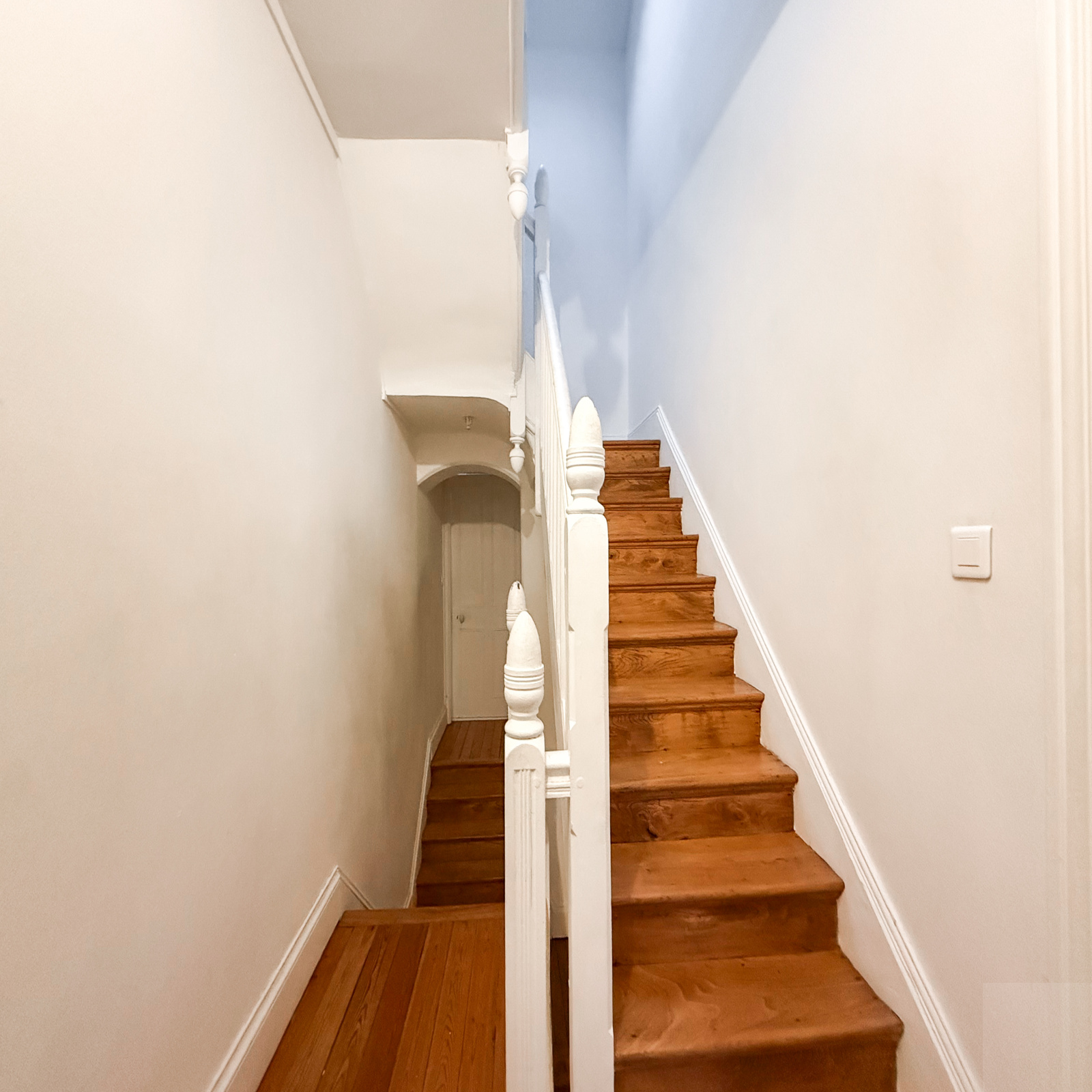 R+1 : un palier desservant une salle de bain (baignoire et douche), deux chambres