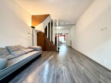 Au rez-de-chaussée : un salon/séjour, une cuisine équipée et aménagée avec coin repas, le tout ouvert, et un WC séparé