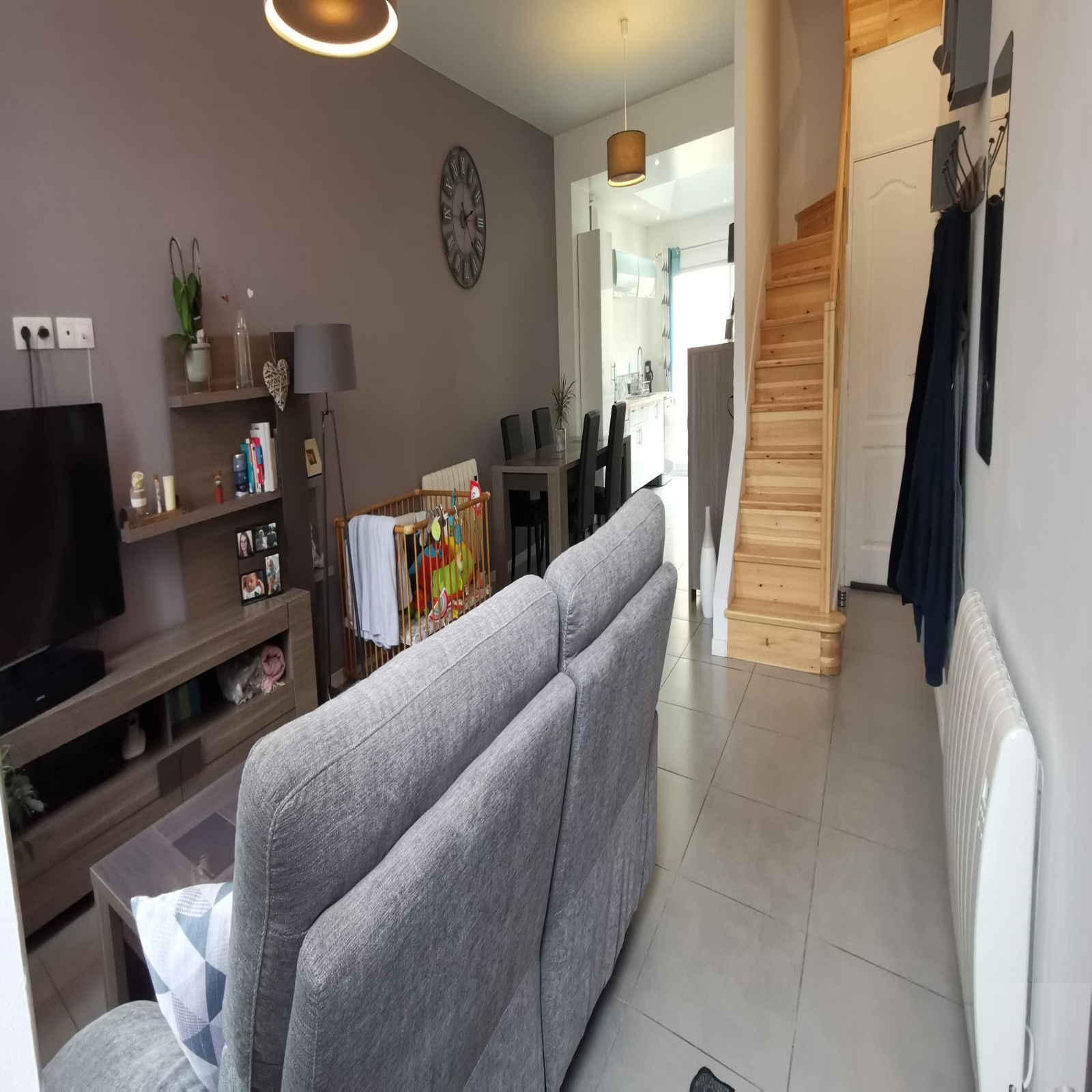 au rez de chaussée salon/séjour, cuisine équipée aménagée avec coin repas et WC