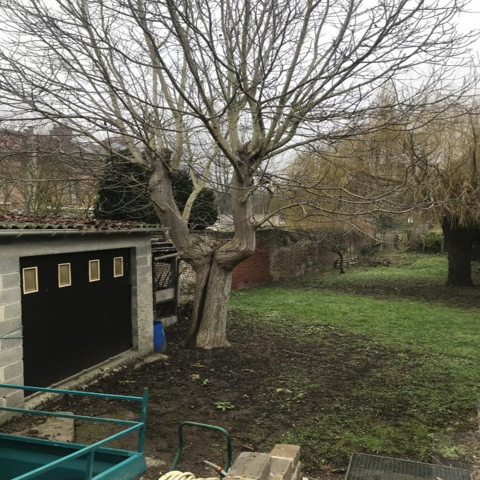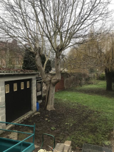 Jardin clos et arboré de 500 m² avec une terrasse, garage et place de parking, dépendance et cave,