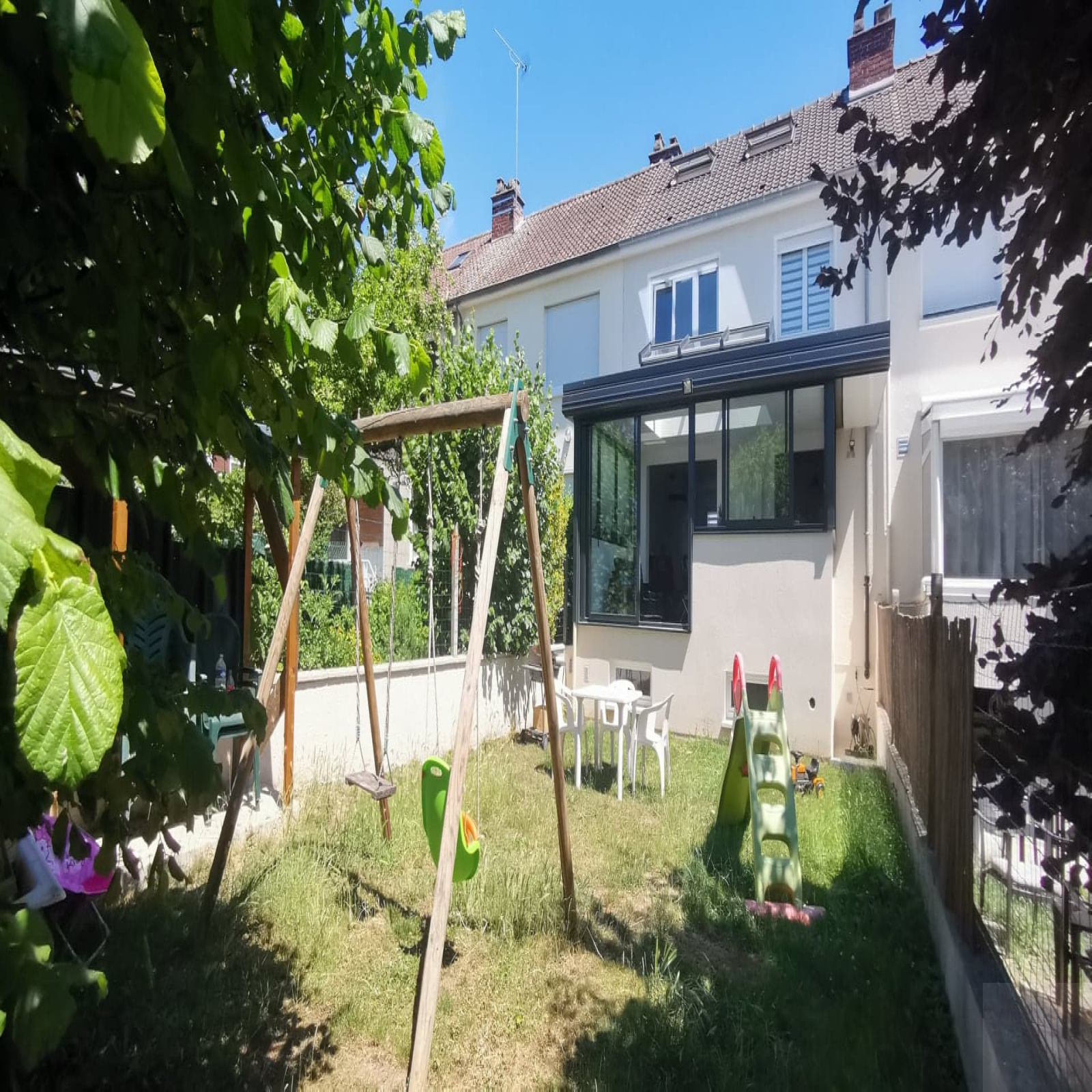 Pavillon mitoyen de 100m² totalement rénové avec goût offrant :