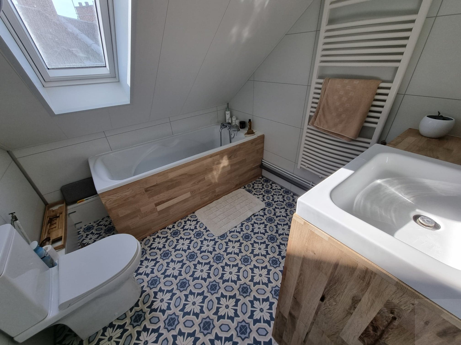 - Au 2ème étage: un palier desservant 1 chambre ainsi qu'une salle de bain avec un WC