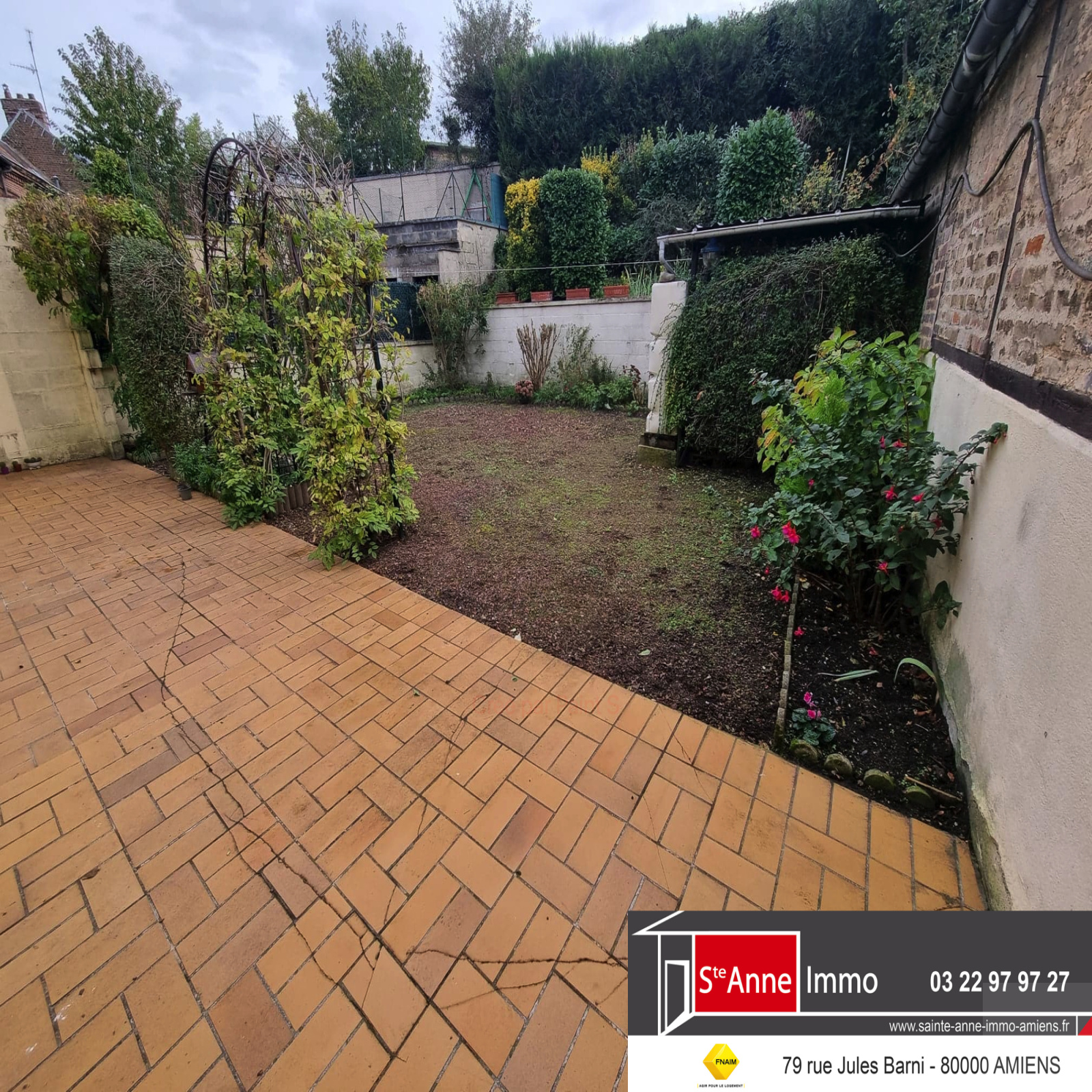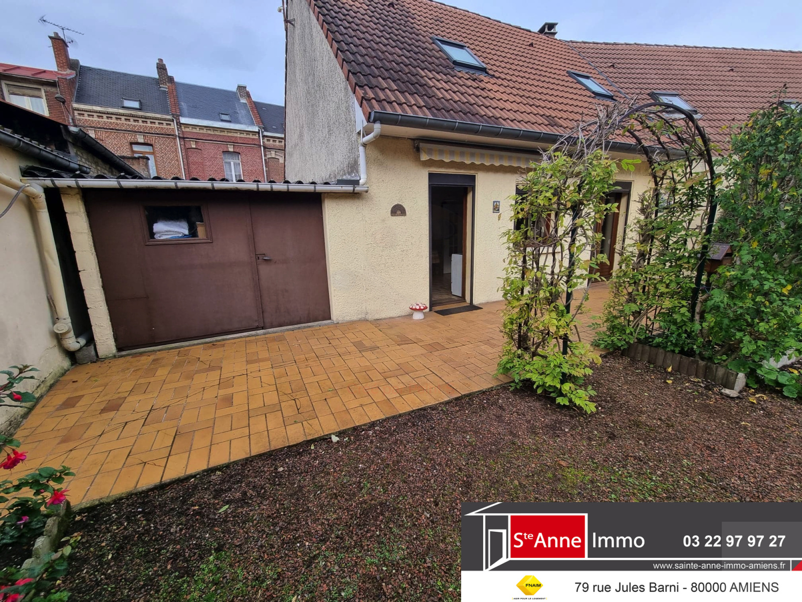 - A l'extérieur : un garage donnant accès au jardin.