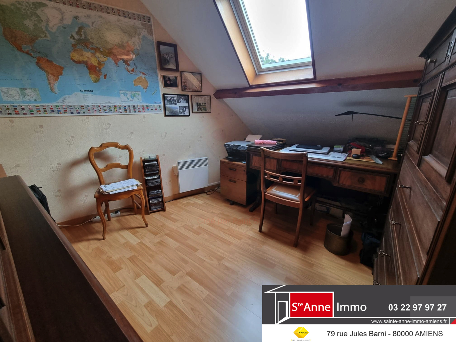 - A l'étage : un couloir desservant trois chambres dont une petite, une salle de bain avec WC.