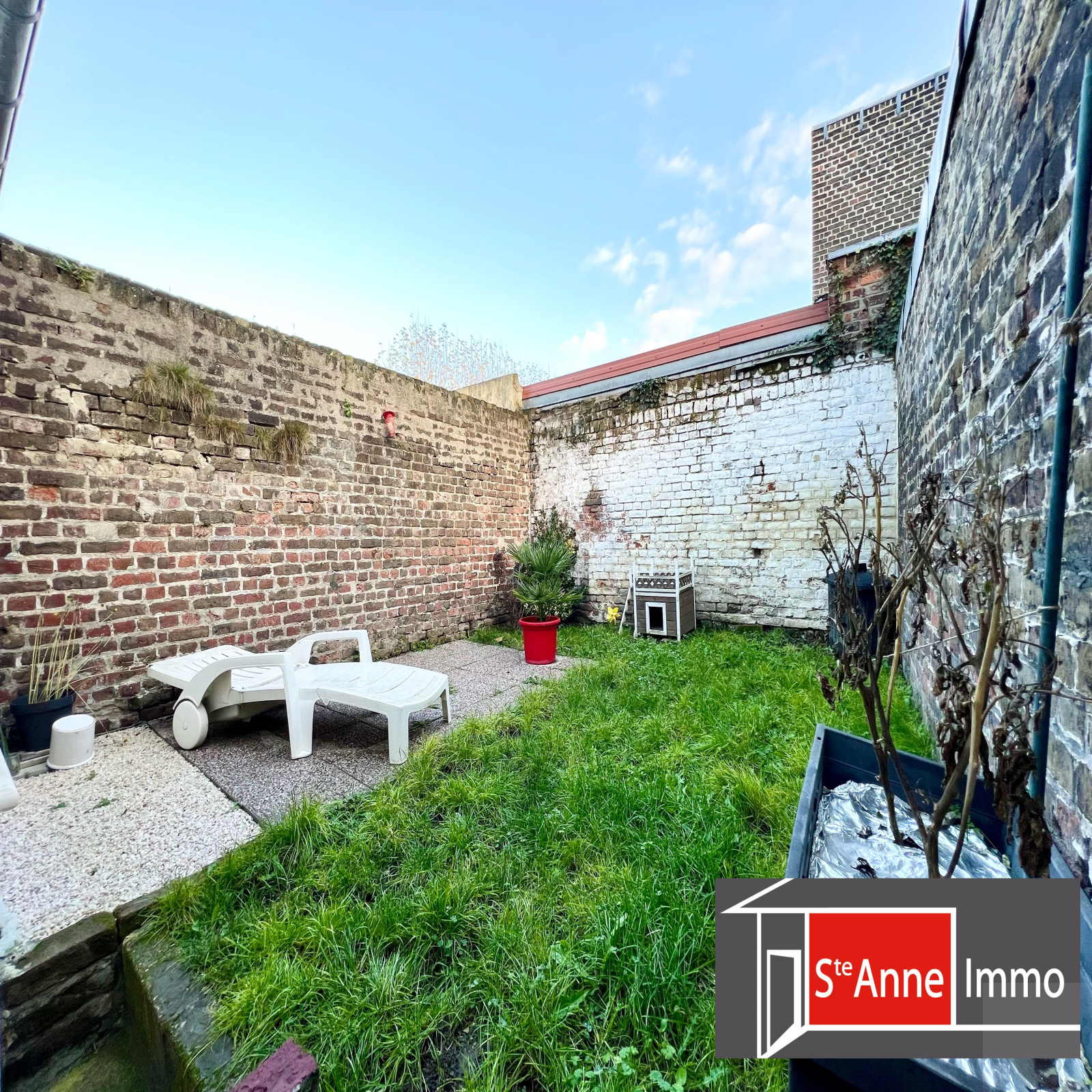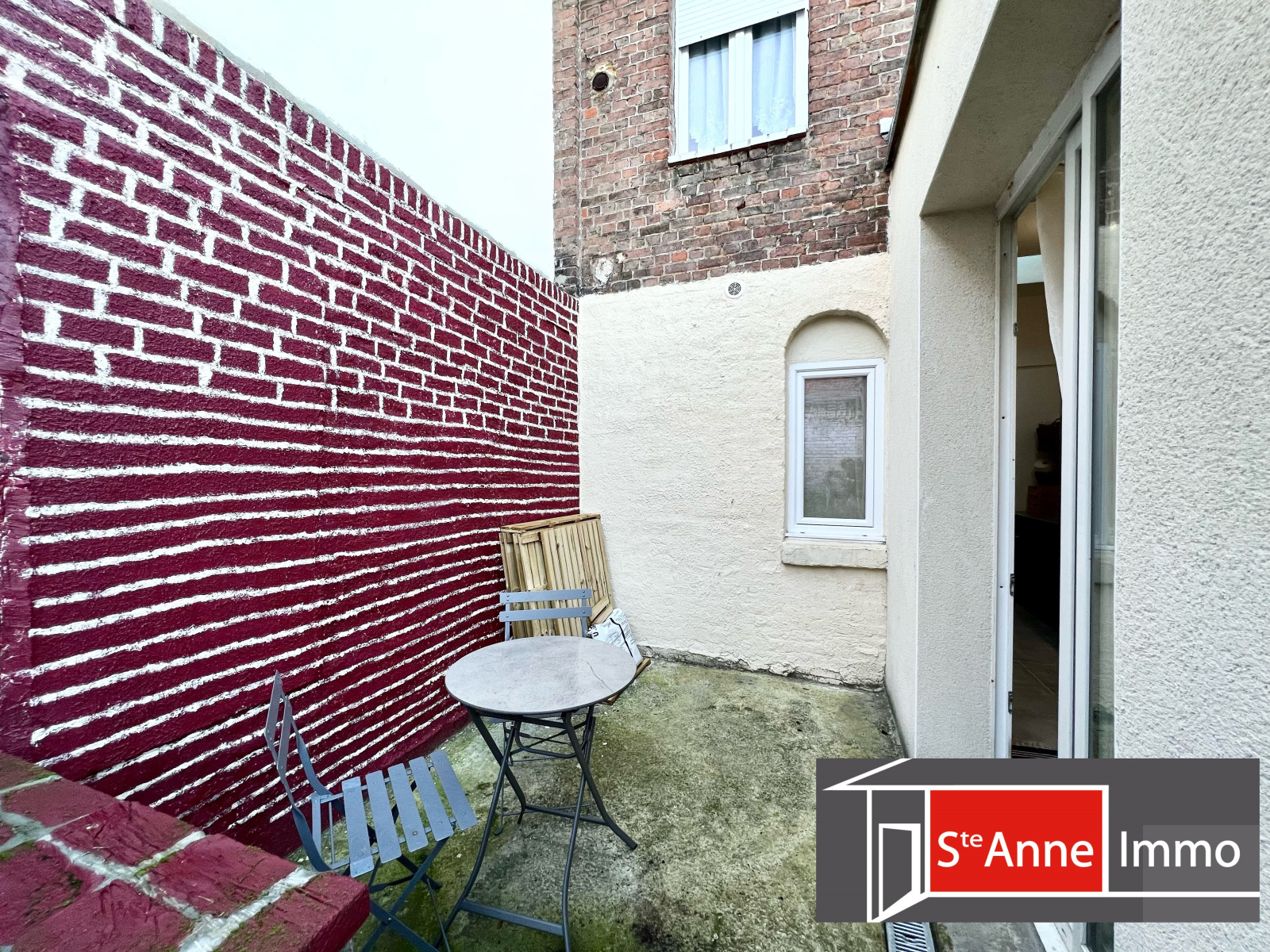 - Exterieur : une terrasse avec un petit jardin