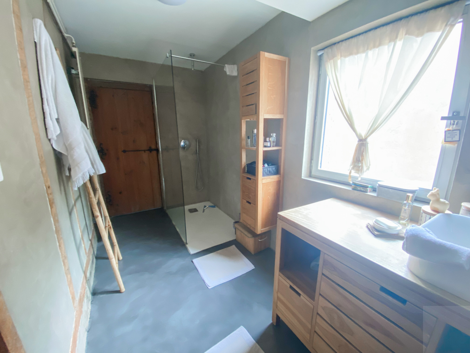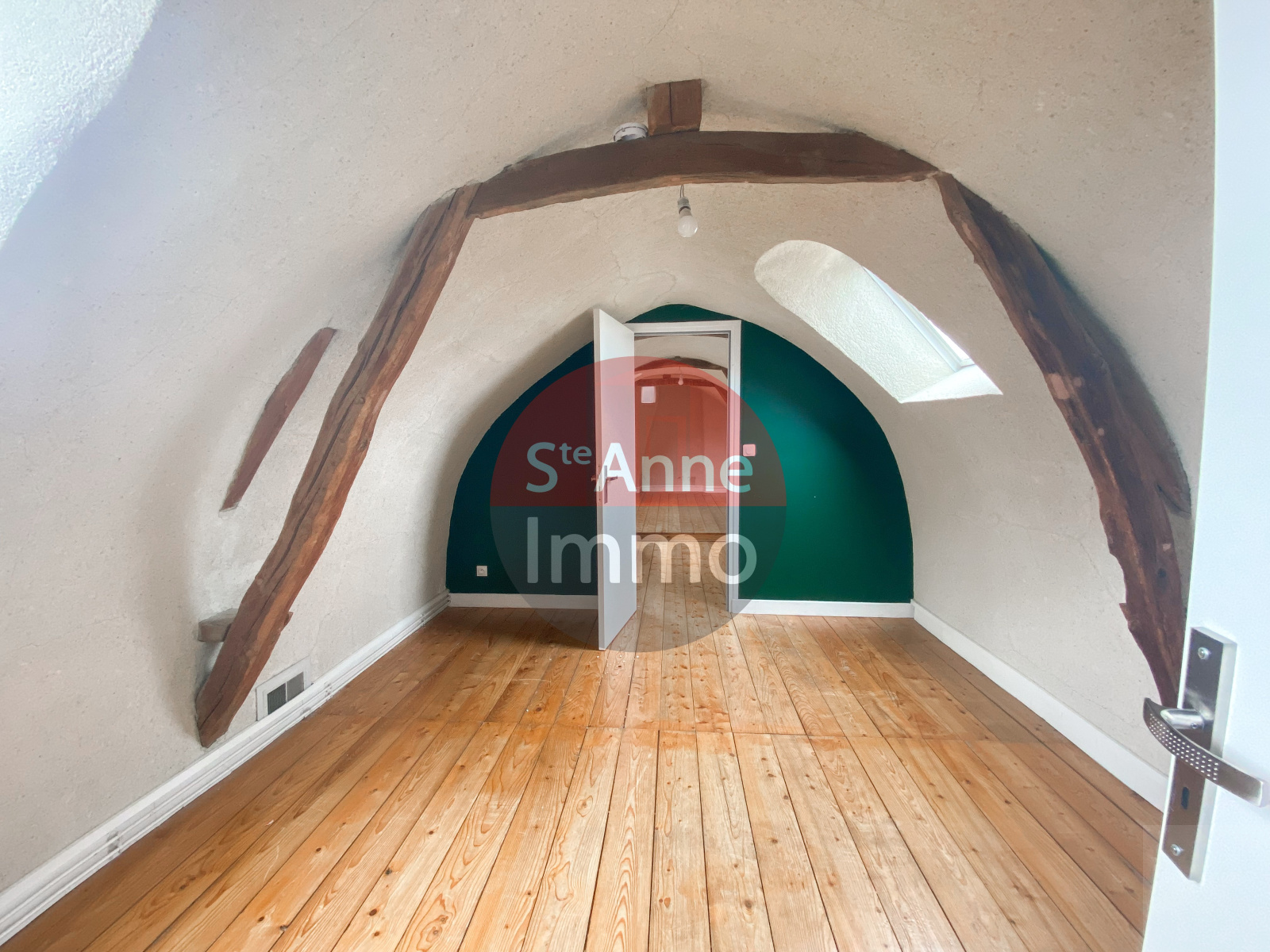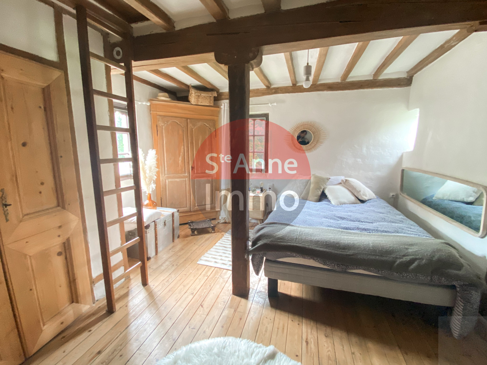 Au 1er étage: sous une magnifique charpente aux formes arrondies un palier dessert 3 chambres, un bureau, et une salle de bain avec WC.