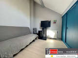 Au rez-de-chaussée : un salon/séjour avec une cuisine équipée et aménagée le tout ouvert, un WC séparé, une salle de bain