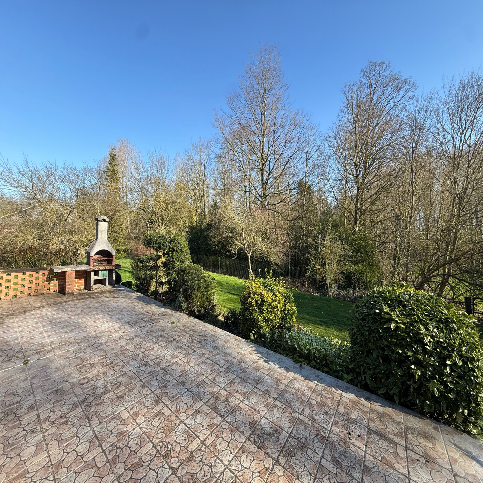 À l’extérieur : un jardin clos et arboré de 1 507 m², une terrasse, portail et porte de garage électriques et une allée en goudron