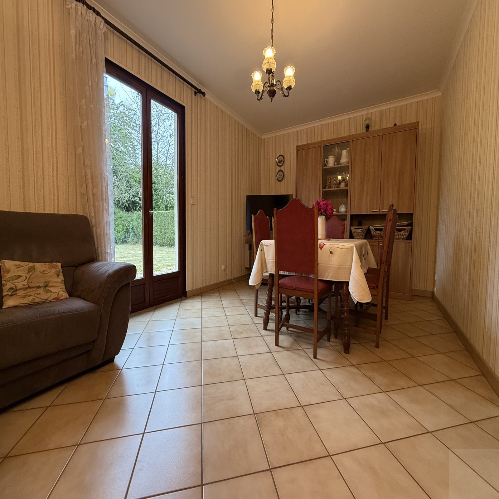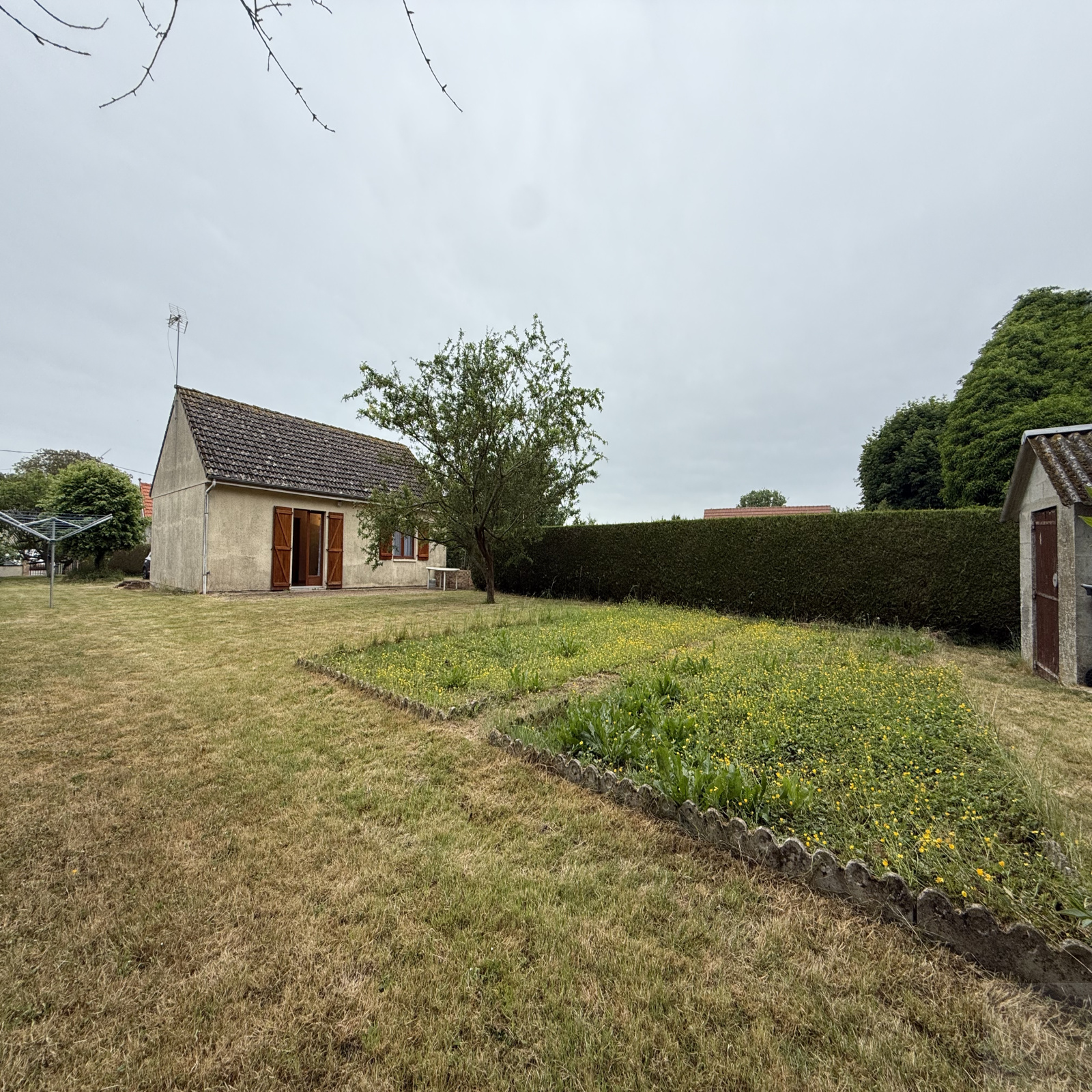 Je vous propose un pavillon individuel de plain-pied de 65m2 avec un jardin clos et arboré de 761 m2 comprenant :