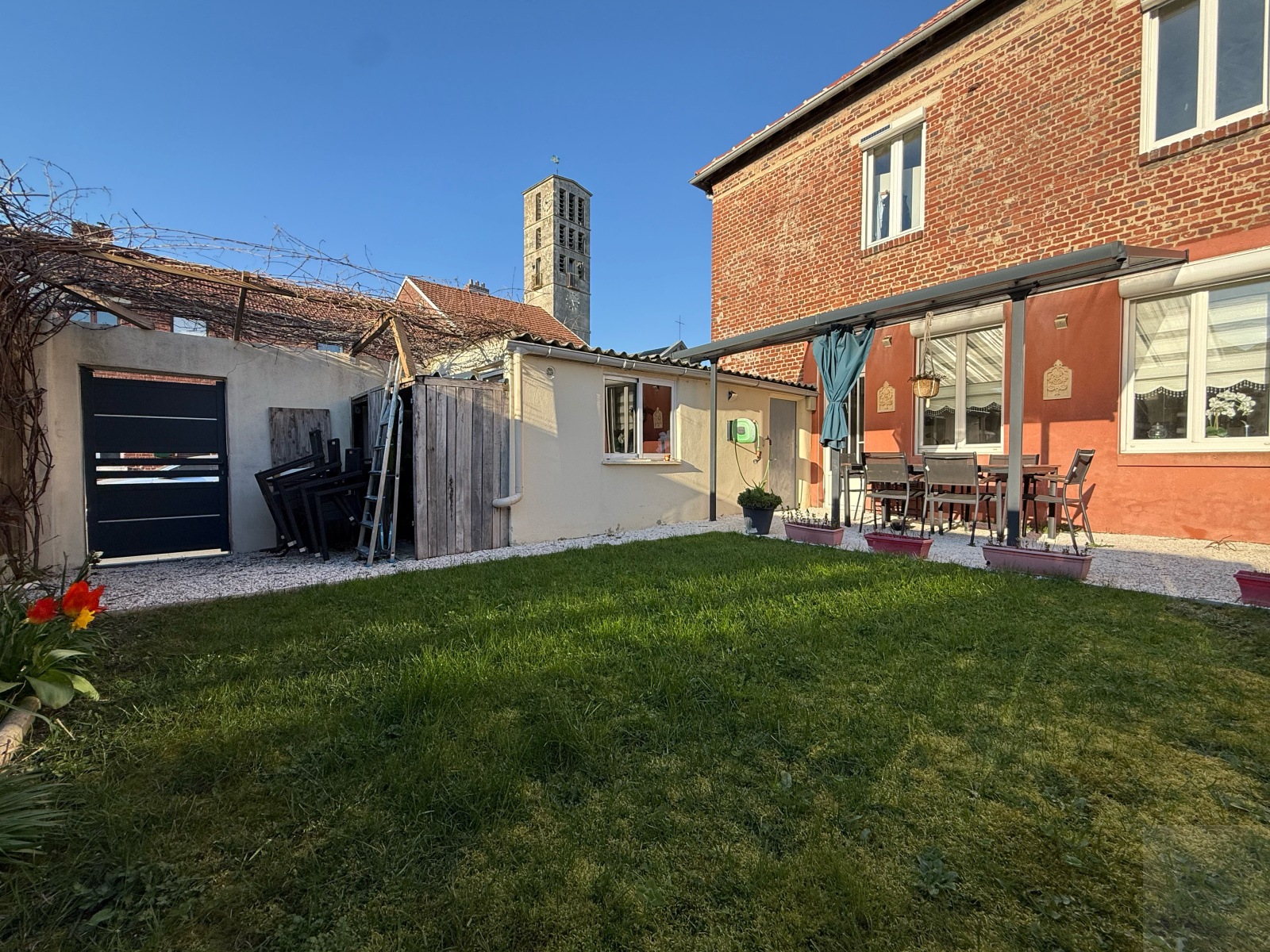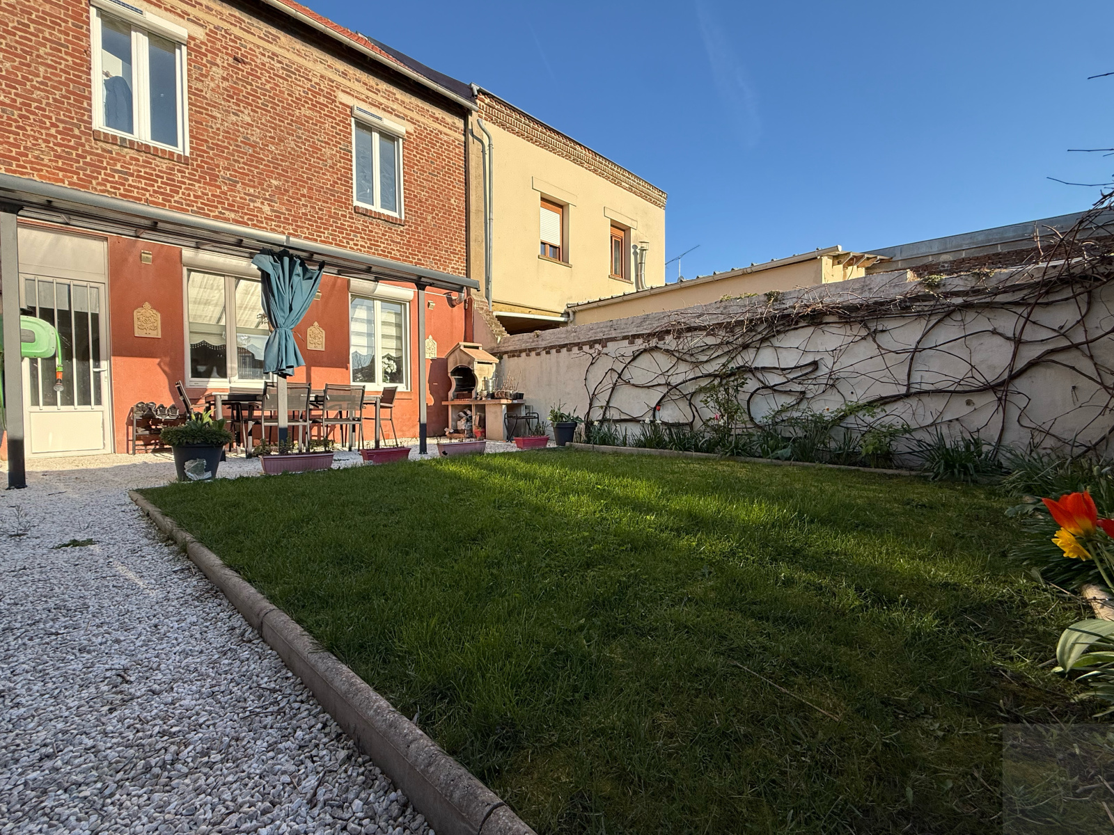 Enzo vous propose une maison semi-mitoyenne de 165m2 avec quatre chambres, un jardin et une dépendance comprenant :