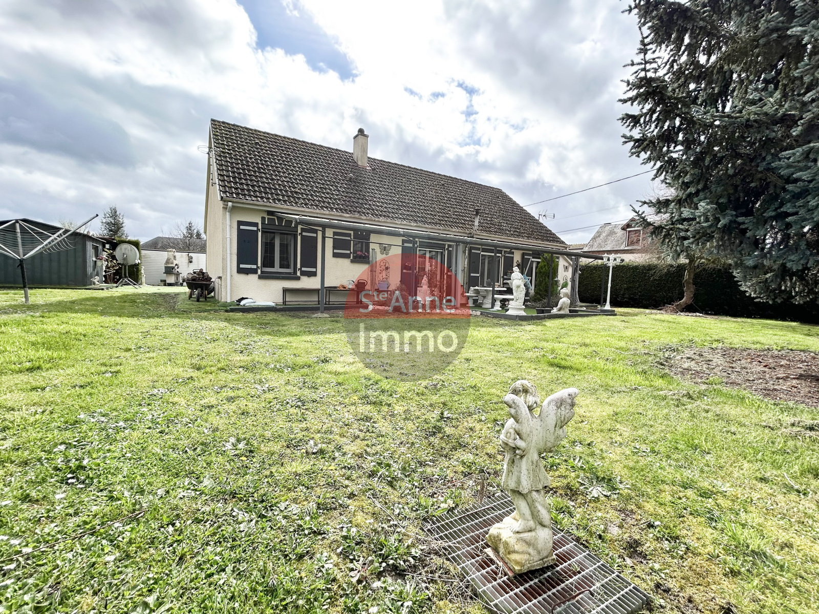 Timothé vous propose une maison individuelle de plain pied avec un jardin clos et arboré de 1023m² comprenant :