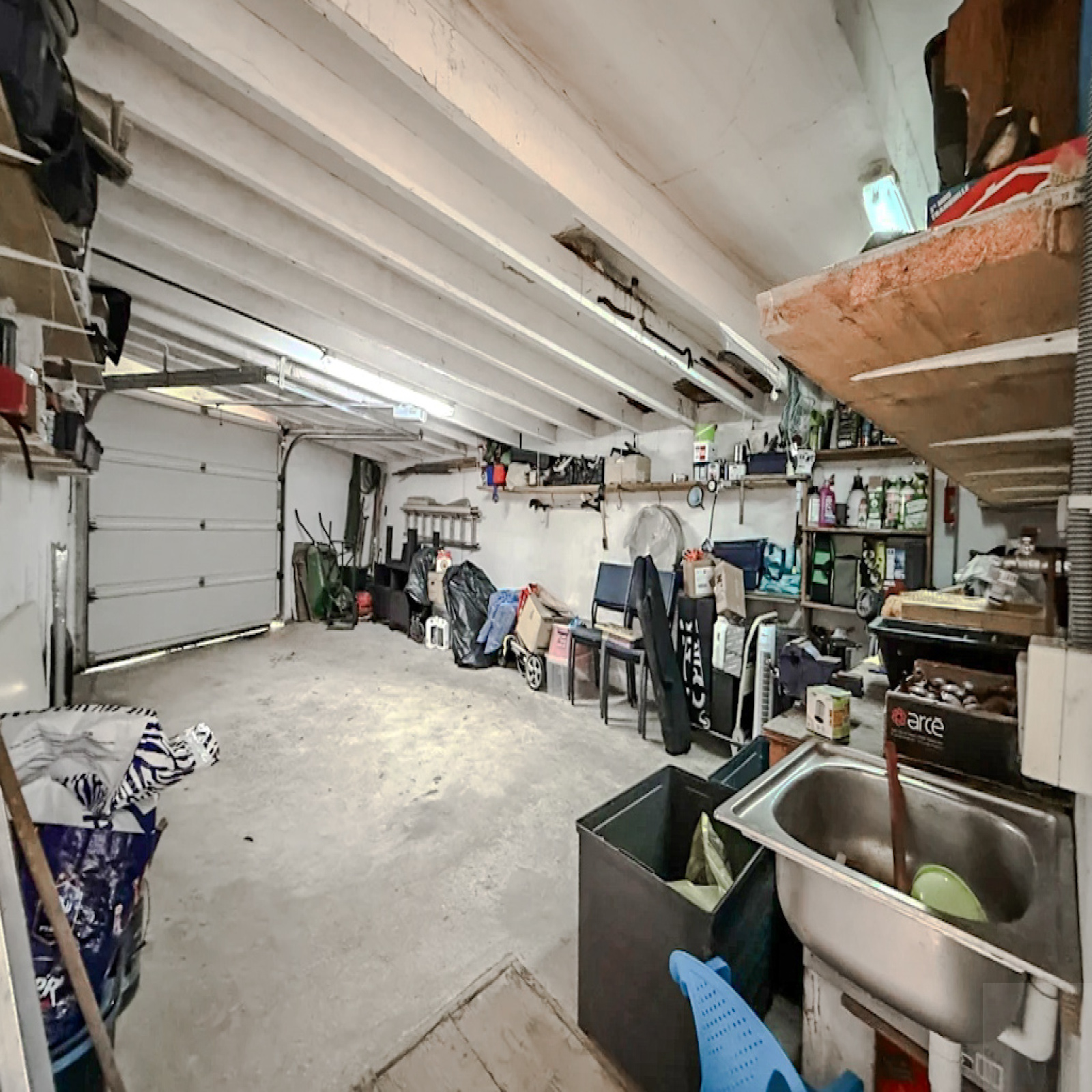 Extérieur : un jardin clos et arboré comprenant une terrasse et un garage