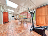 Au rez-de-chaussée : une entrée avec vestiaire, un salon / séjour de 36 m² environ avec cheminée de 2018, une véranda de 38 m² environ avec la possibilité de mettre un poêle à granulés conduit déjà existant, une cuisine équipée et aménagée, une salle de bain, une chambre, un bureau et un WC séparé.