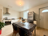 Rez-de-chaussée : une entrée, un salon/salle à manger, une cuisine équipée aménagée avec îlot central et coin repas, le tout ouvert, un cellier, un couloir desservant une salle de bain avec WC et une buanderie.