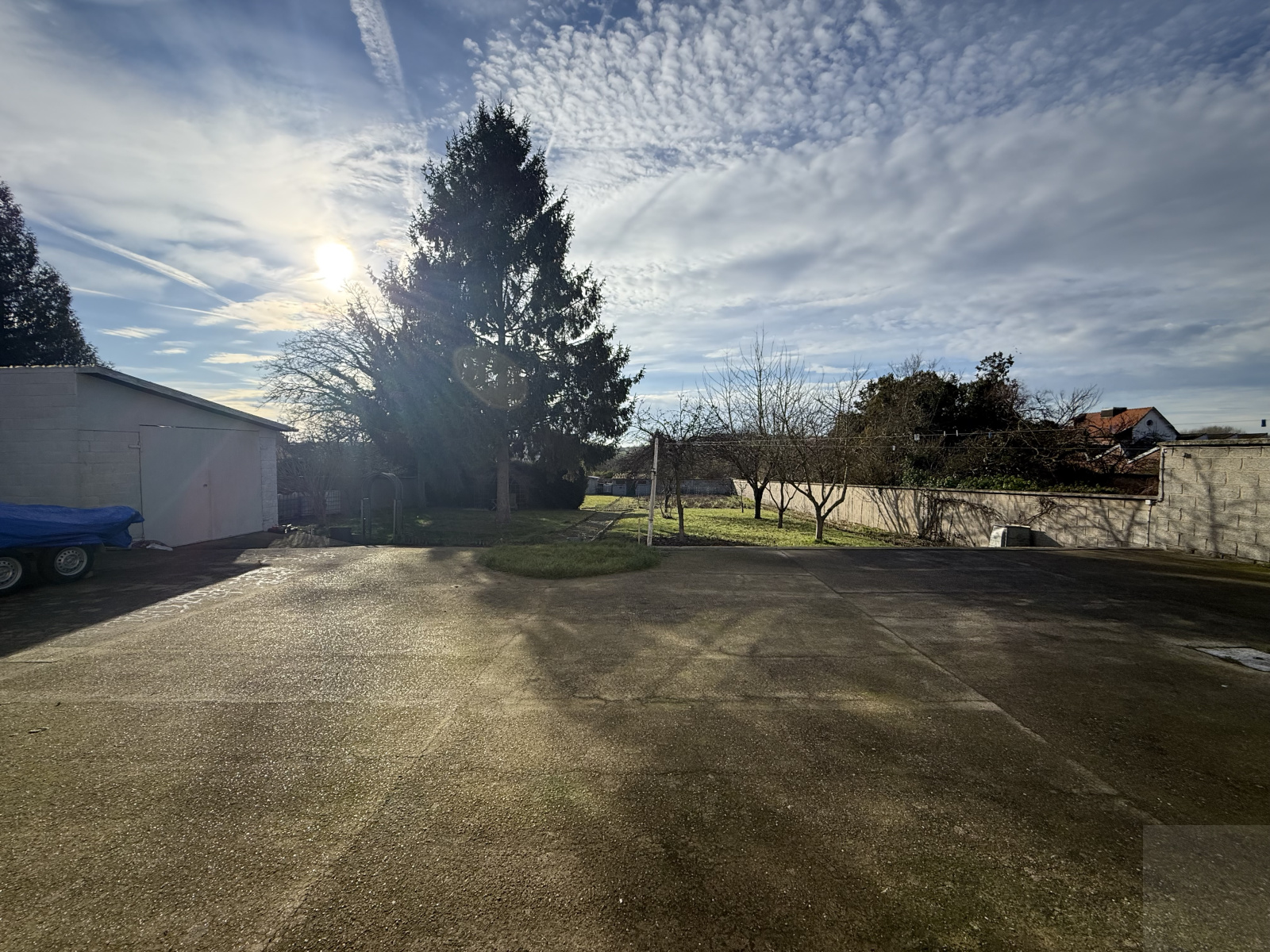 À l’extérieur: Un jardin clos et arboré de1 800 m², une terrasse, un point d’eau extérieur, un garage avec une porte motorisée, un deuxième garage avec espace atelier. Un accès de la rue au jardin est possible par le biais d’un portail