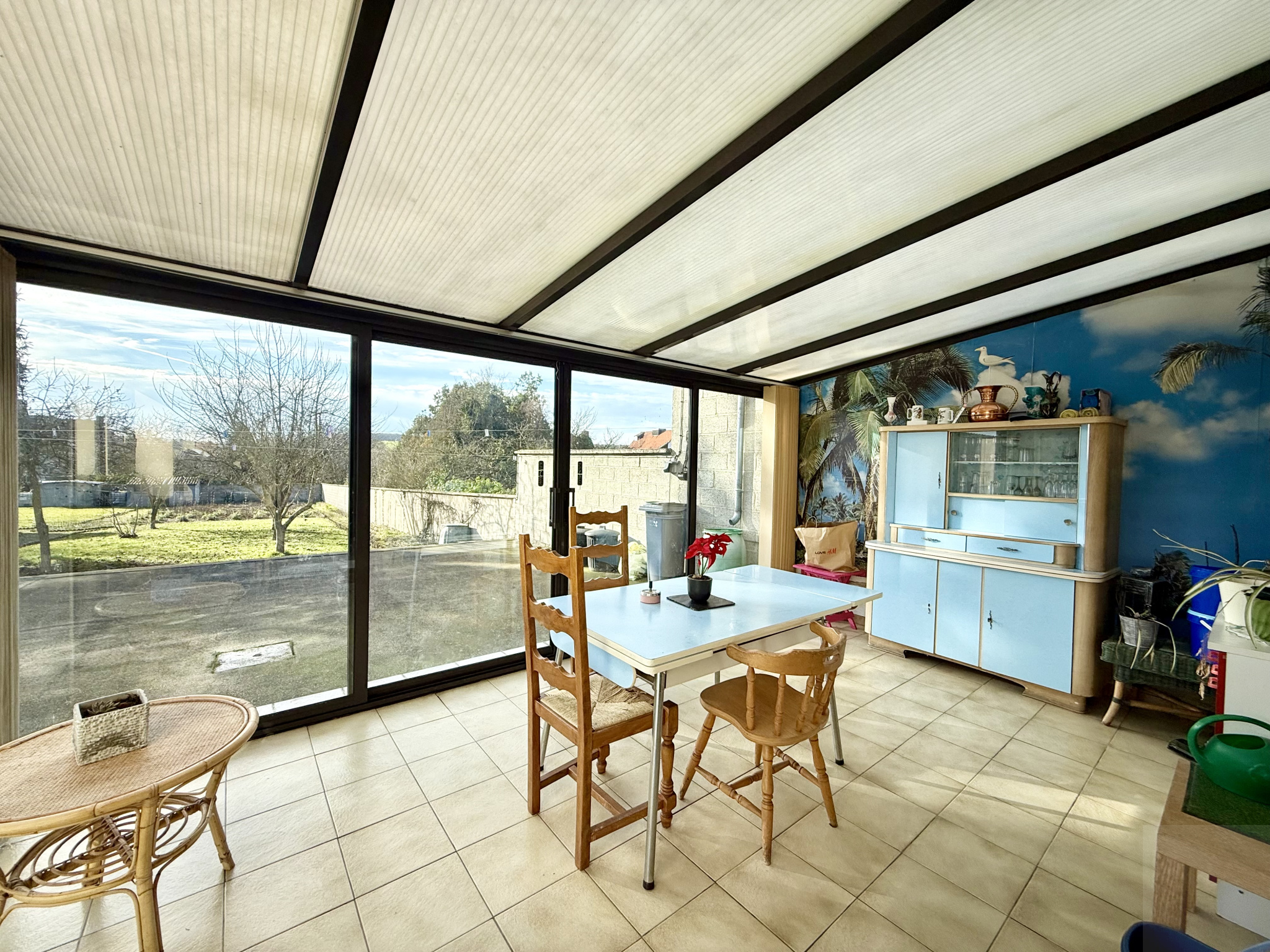 Menuiseries : double vitrage PVC avec oscillo-battants. Volets manuels (persiennes)